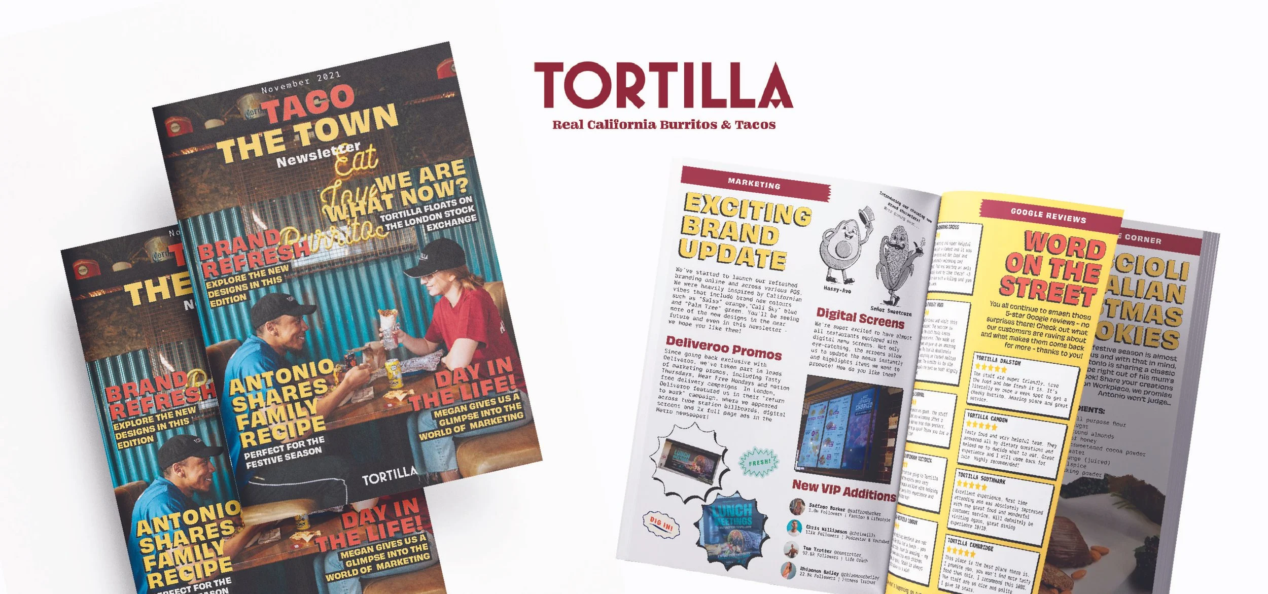 Tortilla decided to break away from the typical format of internal newsletters, opting instead for a printed version reminiscent of a vibrant magazine. Previous newsletters were confined to basic Word documents, lacking the visual appeal and engagement they desired.